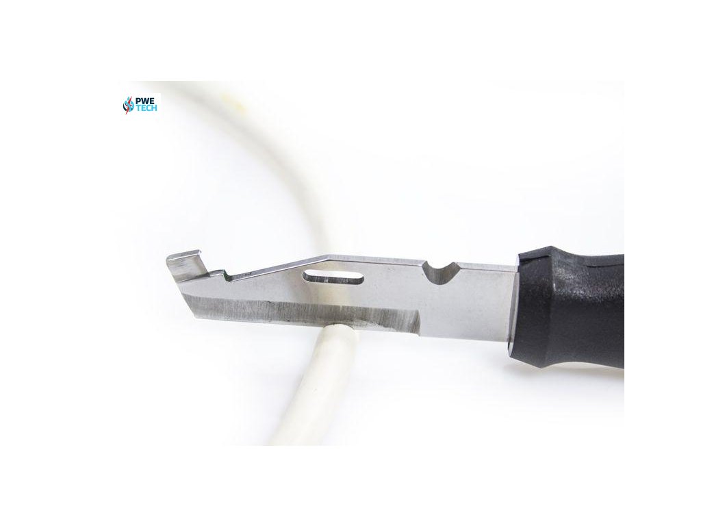 2. Špeciálny tvar špičky noža je určený na prerezanie plášťov elektrických káblov a ich následnému odizolovaniu.