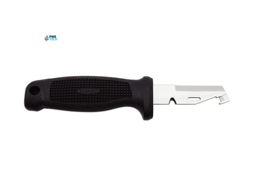 2. Špeciálny tvar špičky noža je určený na prerezanie plášťov elektrických káblov a ich následnému odizolovaniu.