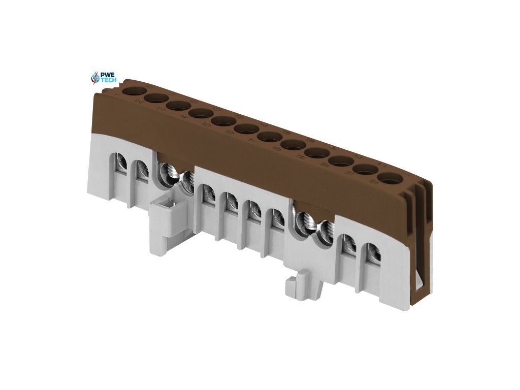 Kompaktné rozmery zbernice (91 x 34 x 18 mm) a stupeň krytia IP20 umožňujú bezpečnú integráciu produktu vedľa nainštalovaných zariadení. Krútiaci moment 1,2 Nm zaisťuje odolné a pevné pripojenie. Montuje sa na lištu DIN TH-35 alebo sa môže priskrutkovať k montážnej doske. Hnedá farba sa bežne používa na označenie fázových káblov.