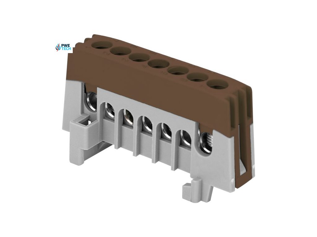 Zbernica na DIN lištu izolovaná hnedá IP20, mostík hnedý L7 7x16mm2
