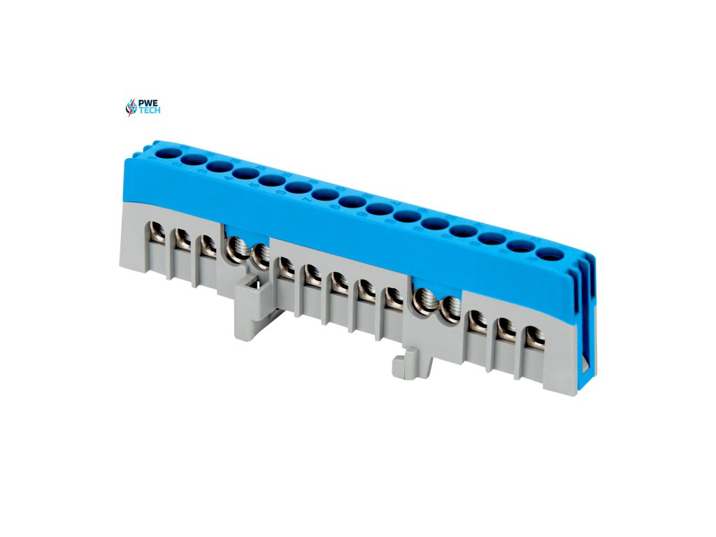 Zbernica na DIN lištu izolovaná modro-šedá IP20, nulový mostík modro-šedý N15 15x16mm2